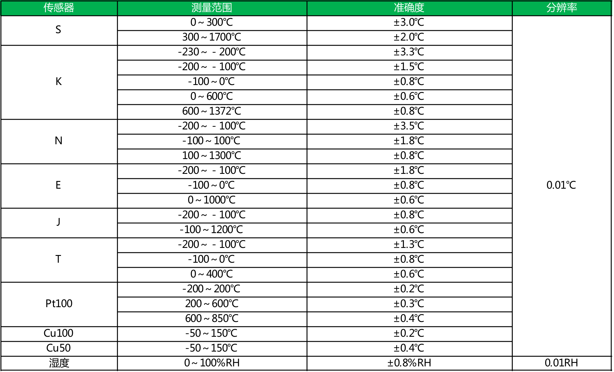 l 热电偶测量时可采用外置冷端补偿方式,采用准确度优于0.2℃的外置四线制PT100测温。