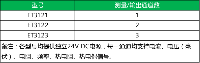● 上述功能中“电流测量”均支持环路测量方式,回路电压24V0.5V。