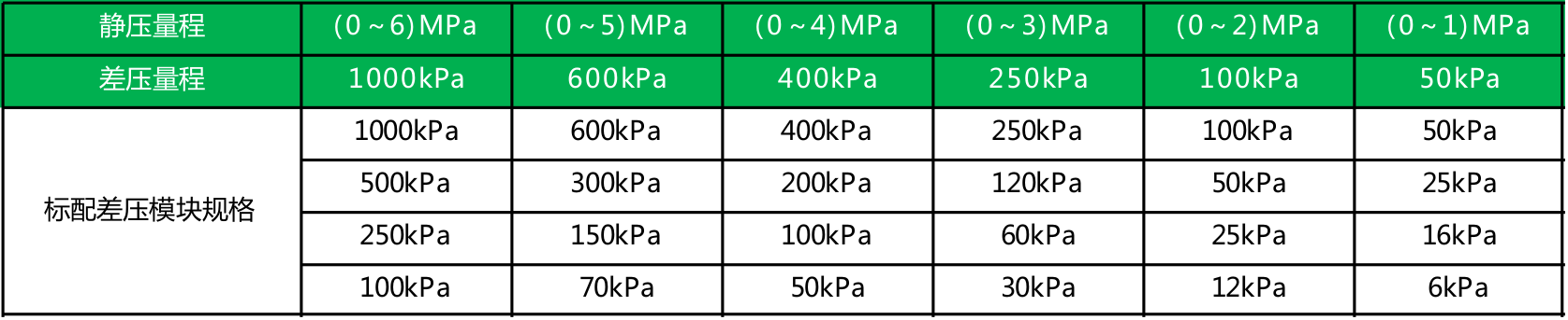 静压、差压量程选型表: